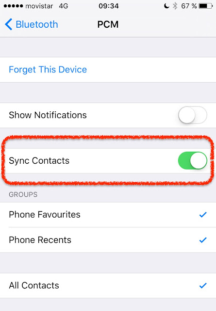 Sin embargo, para hacer uso de estos servicios no necesitas dejar publicada toda tu agenda, por lo que lo recomendable es que cuando parees un dispositivo BlueTooth que no sea tuyo, lo mejor es que te preocupes de evitar la sincronización de los contactos, que quedarán guardados en el sistema de ese coche para que los cotilleen los demás. Es fácil de controlar esto, simplemente en las opciones de BlueTooth elimina la sincronización y ya está.