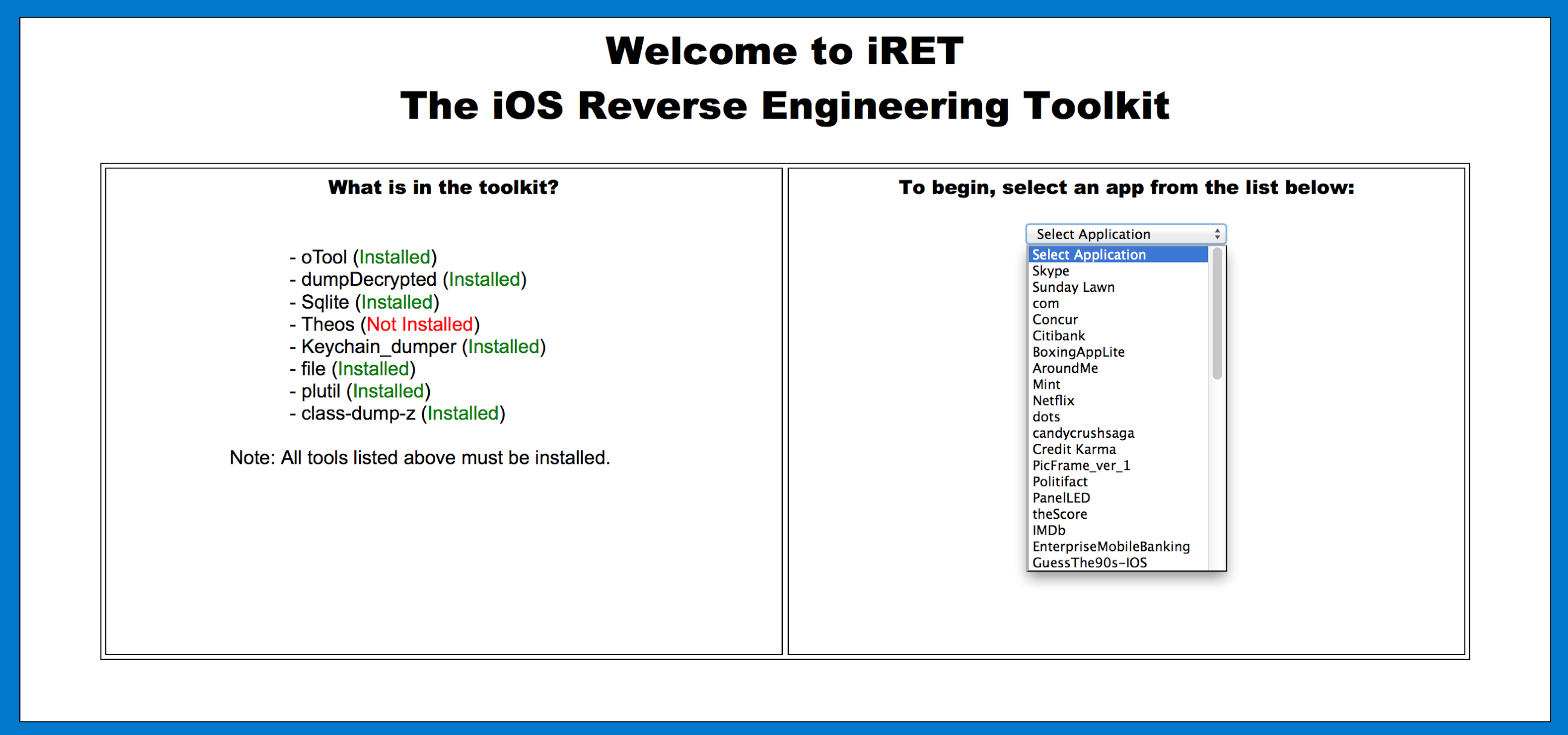 A través de nuestros amigos de Cyberhades hemos conocido iOS Reverse Engineering Toolkit, un paquete con un conjunto de herramientas comúnmente utilizadas para analizar la seguridad de apps para iOS que han sido paquetizadas para ser usadas de forma cómoda.