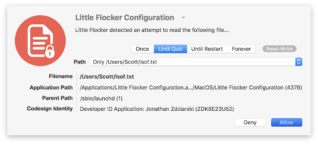 Hace unas semanas hablábamos de la incorporación de Jonathan Zdziarski al equipo de Apple. Fue una sorpresa para muchos, aunque algo más lógico para otros. Muchos se preguntaron que ocurriría con la herramienta de Jonathan llamada Little Flocker, pero ahora ya se sabe que es lo que ocurrirá con la herramienta. Little Flocker tendrá, lo que se ha llamado, un nuevo hogar. Little Flocker es una herramienta que permite mantener los datos personales a salvo del malware como troyanos, ransomware y otras amenazas en el Mac.