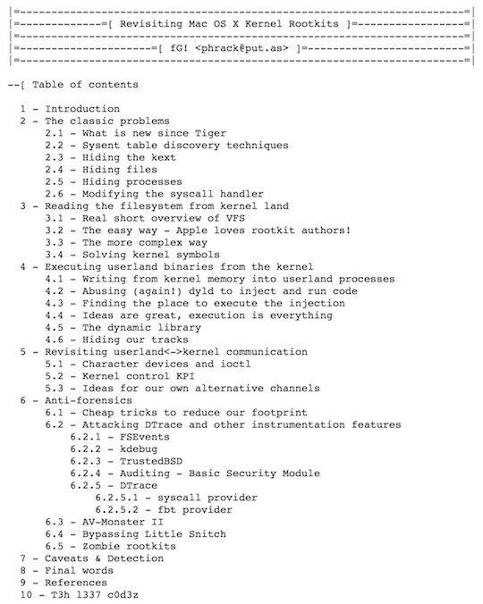 Figura 2: Tabla de Contenidos de "Revisiting Mac OS X Kernel Rootkits"